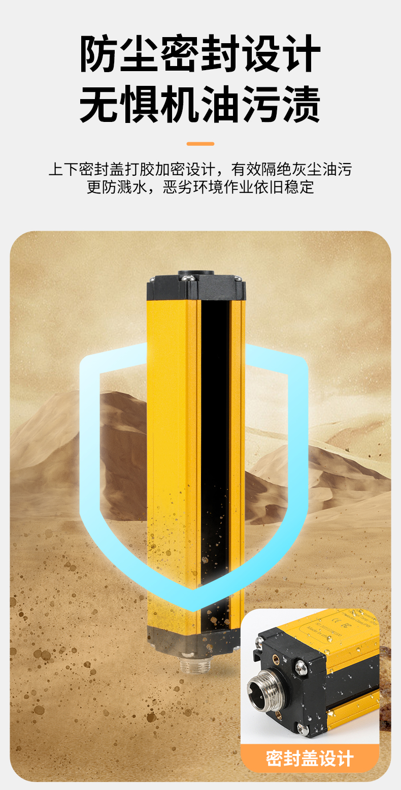 受光器:由若干受光器件組成,接受紅外光線,與發(fā)光器的發(fā)光器件一一對應(yīng),形成保護光幕,產(chǎn)生通光、遮光信號,同時通過信號電纜將信號傳輸給控制器對外部設(shè)備進行控制;